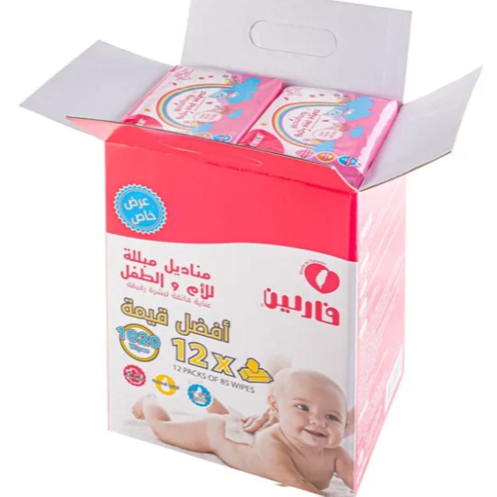 مناديل فارلين المبللة للأطفال (مضادة للطفح الجلدي) - 12 عبوة × 85 منديل