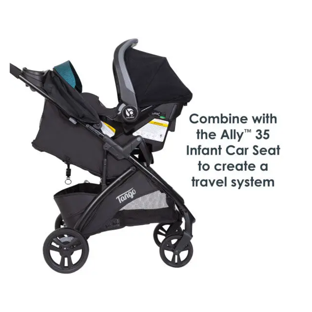 عند طيها، تصبح عربة الأطفال Tango ™ أكثر إحكاما بنسبة 30%*. يمكنك تحويل عربة الأطفال إلى نظام سفر من خلال الجمع بين عربة الأطفال Tango ومقعد السيارة Ally ™ Infant Car Seat المرفق. يتميز مقعد Ally ™ بأجنحة جانبية أعلى وأعمق مع رغوة EPS للحماية المثالية من الصدمات الجانبية، وحزام أمان بخمس نقاط وقاعدة قابلة للتعديل في أربعة أوضاع. تقبل الأطفال من 4 إلى 35 رطلاً.